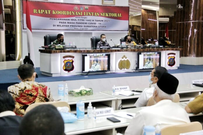 MEDAN – realitasonline.id | Wakil Wali Kota Medan H Aulia Rahman SE ikut rapat koordinasi (rakor) lintas sektoral dalam rangka kesiapan Operasi Ketupat Toba yang berkaitan dengan Idul Fitri 1442H di Aula Catur Prasetya, Mapoldasu, Selasa (27/4/2021).