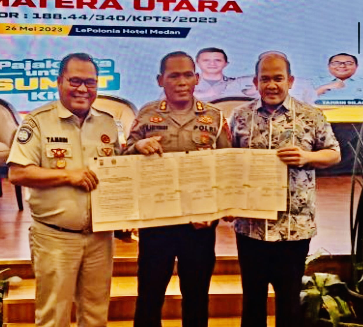 Hadir selain Kepala Bapenda Sumut, Achmad Fadly, Kepala PT Jasa Raharja Cabang Sumut, Thamrin Silalahi, Ditlantas Poldasu yang diwakilkan Kasubdit Regident Polda Sumut, AKBP M.Aritonang, S.I.K.