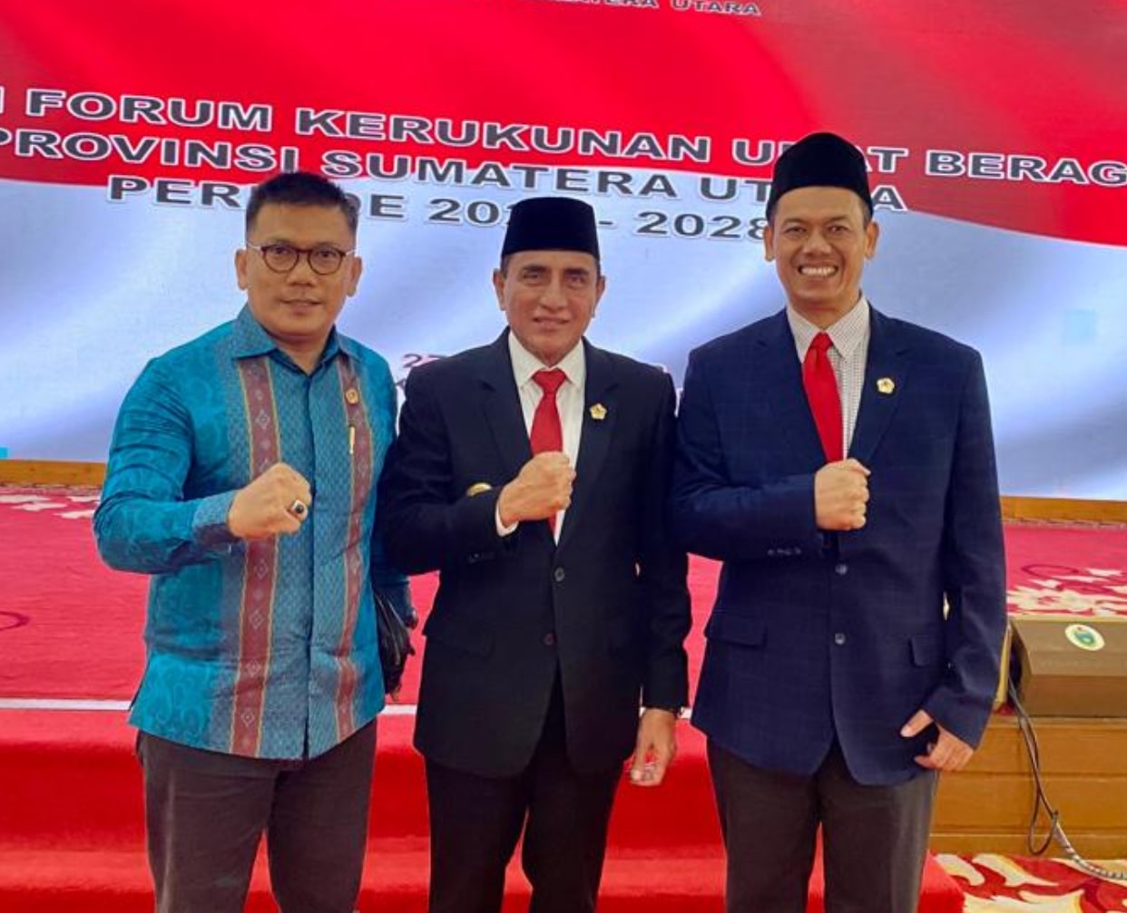 Medan – Gubernur Sumatera Utara (Sumut) Edy Rahmayadi melantik pengurus Forum Kerukunan Umat Beragama (FKUB) Sumut periode 2023-2028, Selasa (27/6) di Aula Raja Inal Siregar Kantor Gubsu di Medan.