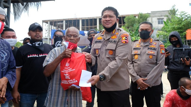 Disamping itu, diserahkan pula bantuan sembako kepada masyarakat dikampung terendam sebanyak 20 paket, masyarakat nelayan sebanyk 20 paket, masyarakat Bombaru sebanyak 20 paket, masyarakat Pesisir sebanyak 20 paket, masyarakat Bedeng sebanyak 15 paket, masyarakat di Lembah Damai sebanyak 15 paket, masyarakat Marpoyan sebanyak 20 paket, juga kepada para purnawirawan Bhayangkara sebanyak 250 paket serta keluarga wartawan sebanyak 20 paket.