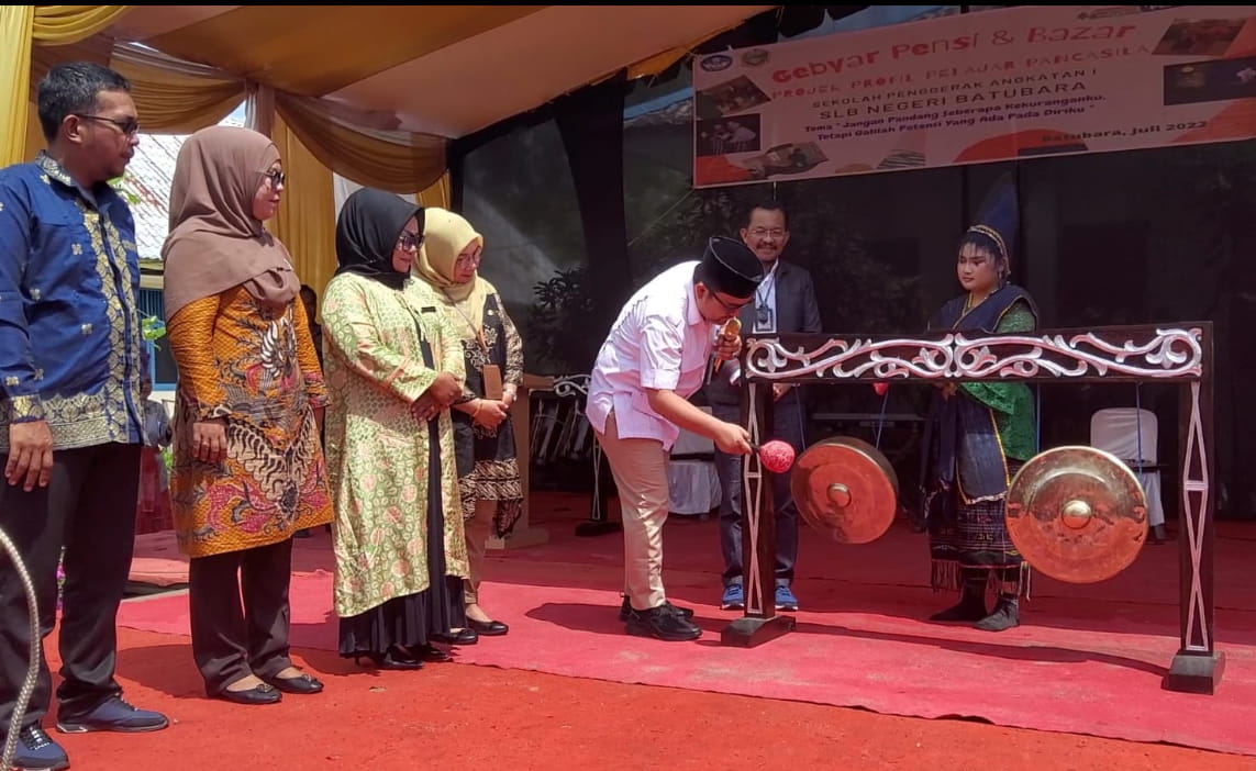 Hal tersebut disampaikan Bupati Batu Bara Zahir yang diwakili oleh Wakil Bupati Oky Iqbal Prima didampingi Kadisdik Batu Bara Ilyas Sitorus saat membuka Gebyar Pensi dan Bazar Projek Propil Pelajar Pancasila Sekolah Penggerak Angkatan I dengan tema “Jangan Pandang Seberapa Kekuranganku, tetapi Galilah yang ada pada diriku” bertempat di SLB Negeri Klimbis Air Putih Kab. Batu Bara, Kamis 28/07/22.