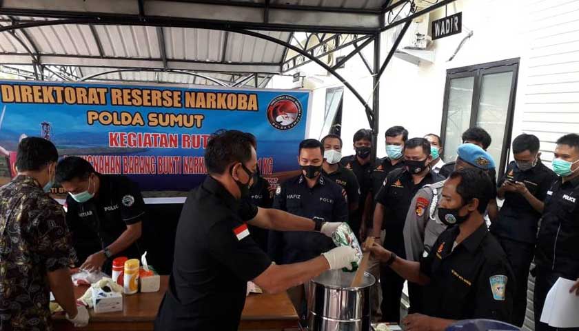 Pemusnahan barang bukti narkotika tersebut dipimpin langsung Direktur Reserse Narkoba Polda Sumut, Kombes Pol Robert Da Costa, di halaman Mako Dit Reserse Narkoba Polda Sumut, Kamis (27/8/2020).