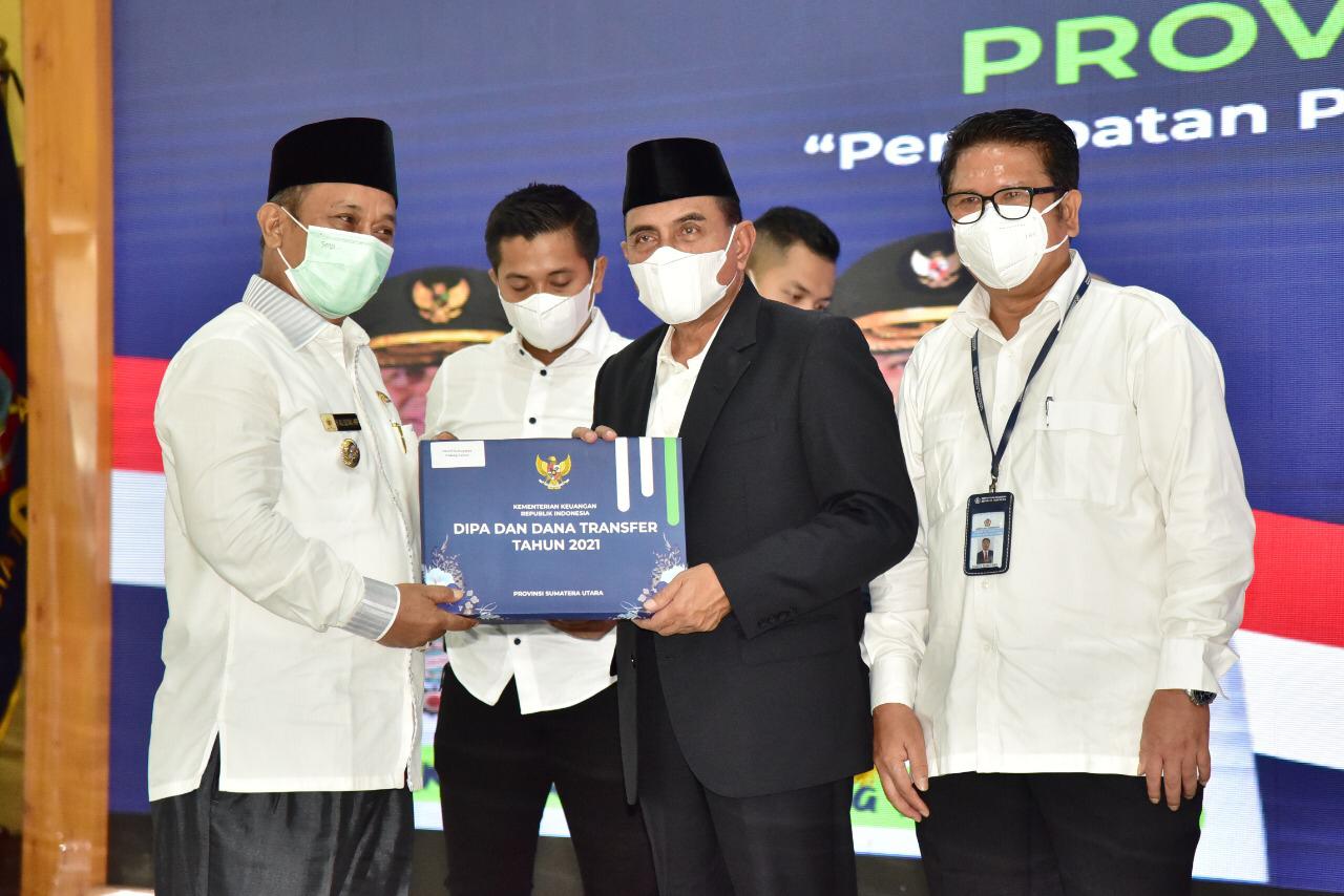 PADANGLAWAS – Bupati Padang Lawas (Palas) H.Ali Sutan Harahap (TSO) menerima Daftar Isian Pelaksanaan Anggaran (DIPA) dan Rincian Alokasi Transfer Ke Daerah dan Dana Desa (TKDD) Tahun 2021 sebesar Rp. 934, 5 miliar.