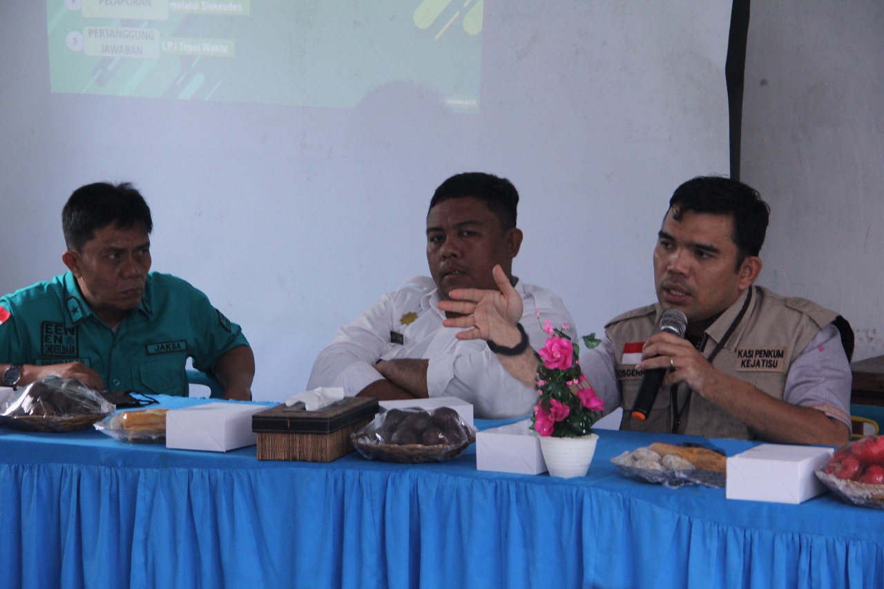 Kasi Penkum Kejati Sumut Yos A Tarigan dalam paparannya menjelaskan terkait aspek hukum penggunaan dana desa agar tidak salah arah dan tepat sasaran. Kalau dari perencanaannya sudah ada niat untuk ‘mendapatkan keuntungan bagi diri sendiri atau pribadi’ maka ke depannya pelaksanaan penggunaan dana desa tersebut akan berpotensi bermasalah.