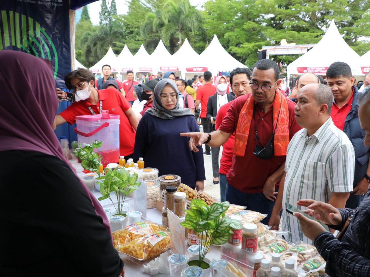 Didampingi PGS EVP Telkom Regional I Djoko Srie Handono, Maulan bersama Arya dan Afriwandi berkesempatan mengunjungi booth UMKM binaan Telkom peserta Bazar UMKM.