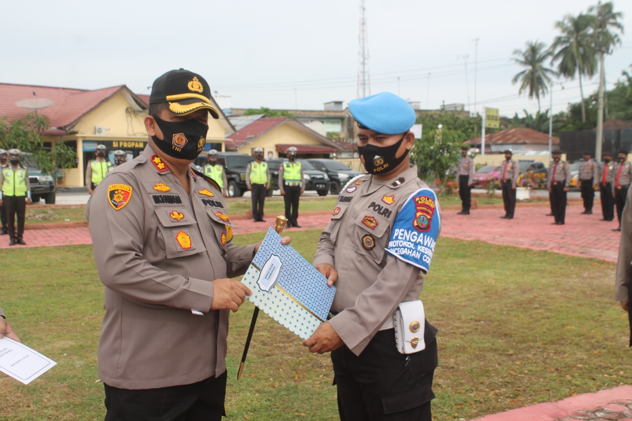 Penyerahan penghargaan ini diberikan disela Apel pagi, Senin  (28/9/2002) yang dipimpin langsung Kapolres Batubara guna menghargai kinerja personil dalam melaksanakan tugas dan kepedulian dalam mencegah penyebaran Covid 19.
