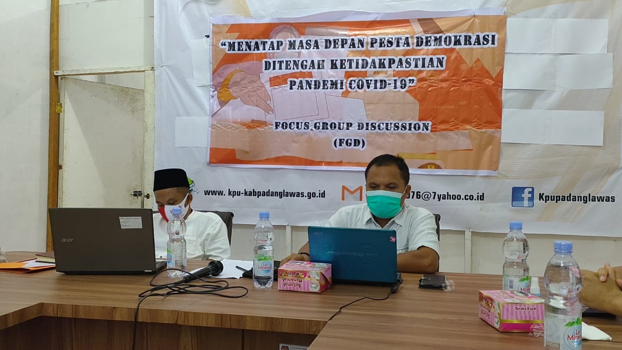 FGD bertemakan Menatap Masa Depan Domokrasi Ditengah Ketidakpastian Pandemi Covid 19 menghadirkan narasumber ketua Ikatan Dokter Indonesia (IDI), ketua Komisi Pemilihan Umum Daerah (KPUD), dan Bawaslu Kabupaten Padang Lawas.