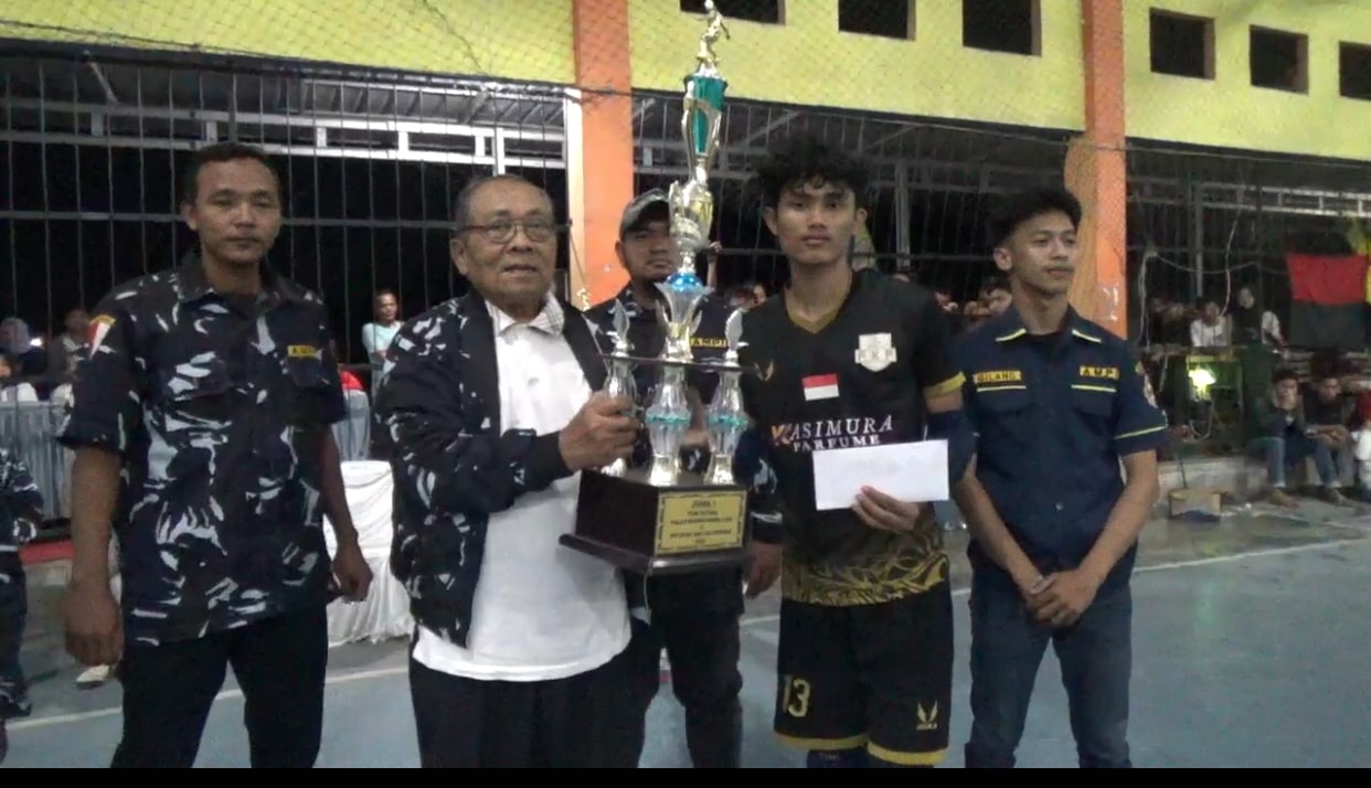 Foto: Ketua Dewan Kehormatan DPD AMPI Deli Serdang, Drs H Wagirin Arman selaku Anggota DPRD Sumut saat menyerahkan Piala Juara 1 Turnamen Futsal di Gor Pemnas Arena, Desa Suka Mandi, Kecamatan Lubuk Pakam, Kabupaten Deli Serdang, Minggu (26/11/2023) malam