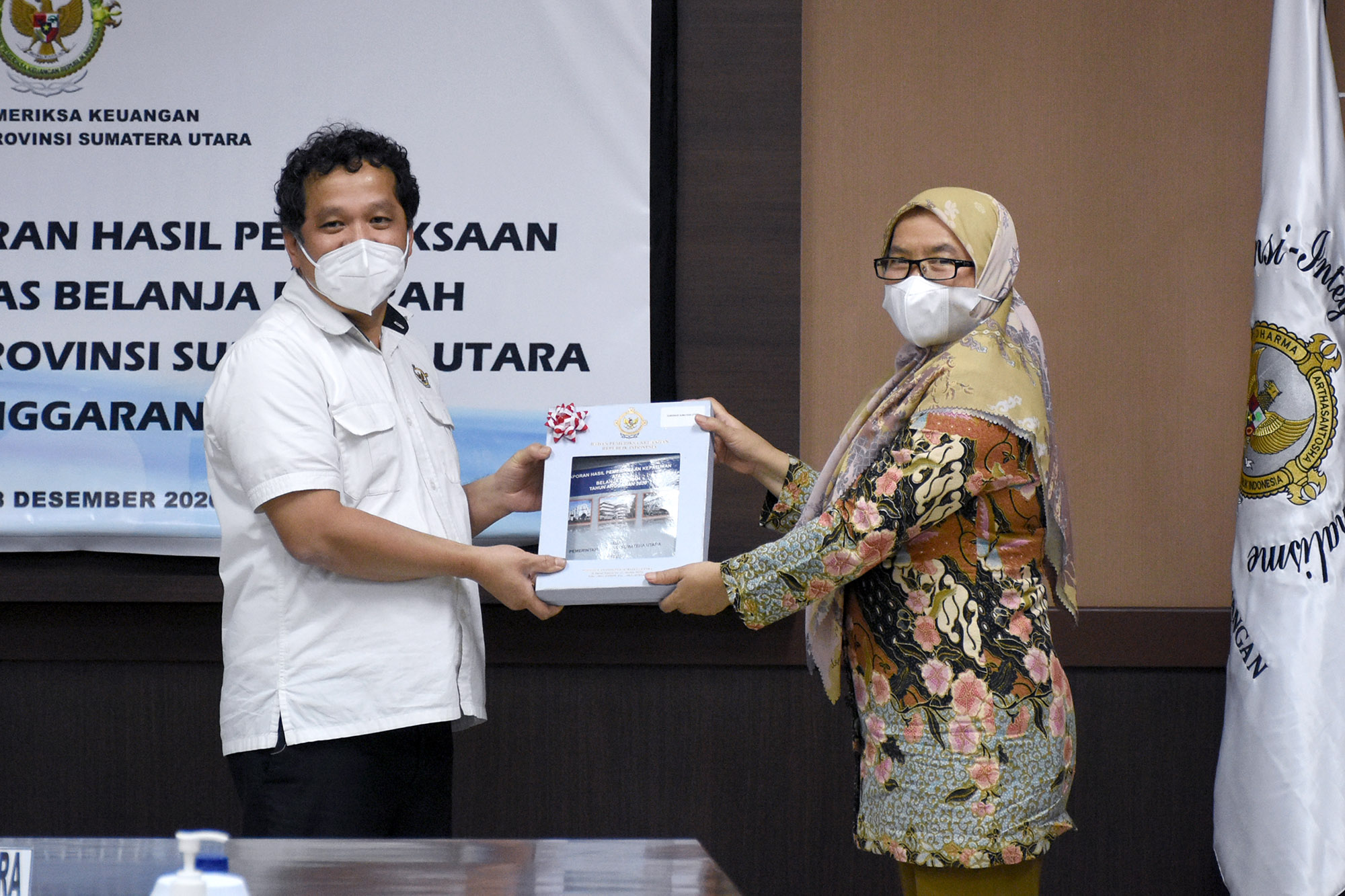 SUMUT – Sekretaris Daerah Provinsi (Sekdaprov) Sumatera Utara (Sumut) R Sabrina menerima Laporan Hasil Pemeriksaan (LHP) Kepatuhan atas Belanja Daerah Tahun Anggaran (TA) 2020 dari Badan Pemeriksa Keuangan (BPK) Republik Indonesia Perwakilan Sumut. Laporan tersebut menyebut pengelolaan keuangan Pemprov Sumut dinilai membaik dibanding pada tahun sebelumnya.