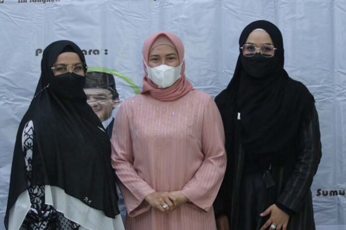 Sri Ayu Mihari ikut mengukuhkan Komite (kepengurusan) Hijabers Mom Community (HmC) Medan periode 2021-2024 di Masjid Al Musannif Jalan Cemara Kecamatan Percut Sei Tuan Kabupaten Deliserdang, Minggu (28/3/2021).