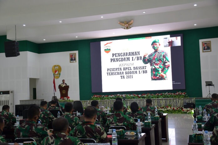 Pangdam I/BB dalam sambutannya mengatakan mengucapkan selamat datang kepada para peserta apel Dansat di Kodam I/Bukit Barisan, dan selamat mengikuti kegiatan apel dansat tesebar secara virtual dan tatap muka.
