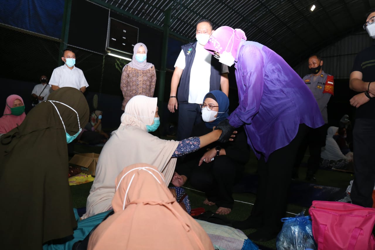 INDRAMAYU – Menteri Sosial Tri Rismaharini sambangi Posko Pengungsi yang terdampak dari kebakaran kilang minyak Pertamina di Balongan, Indramayu, Jawa Barat, Senin, (29/03/2021).