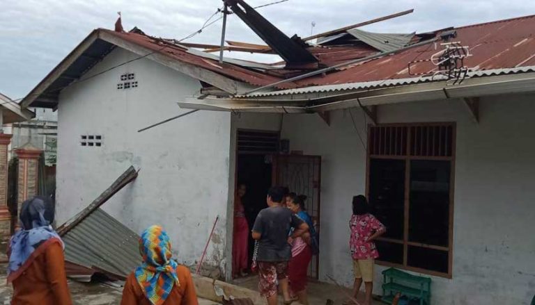 Dari lokasi kejadian, pemilik empat rumah Sopian Lubis mengatakan, kejadian malam itu hujan deras serta angin puting beliung berputar- putar pada atap rumahnya. Berselang beberapa menit satu persatu atap rumahnya berterbangan dan menimpahi rumah tetangga sebelah.