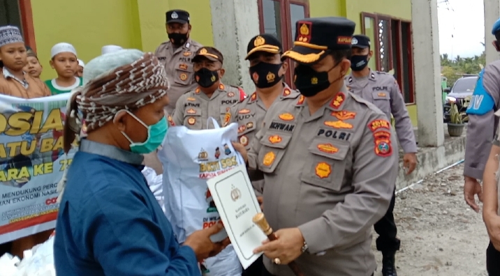 BATUBARA-Dalam Bakti sosial Polres Batubara  menyambut HUT Bayangkara ke 75, masyarakat mengaku terharu atas kehadiran Kapolres AKBP Ikhwan Lubis yang disebut masyarakat Polisi Dermawan.