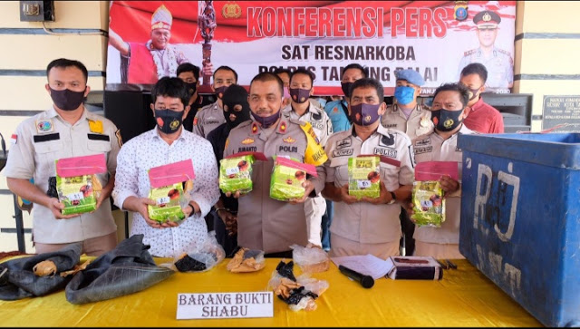 Kapolres Tanjungbalai AKBP Putu Yudha Prawira SIK melalui Waka Polres Tanjungbalai Kompol H. Jumanto, SH.MH didampingi Kasat Narkoba,AKP Zulfikar,KBO SatNarkoba Iptu L.Hutapea, Jum’at (28/8/20) saat konferensi pers mengatakan, pelaku Syahril Ritonga alias Adek (49) warga jalan Sei Citarum Lingkungan VI,Kelurahan Sumber Sari Kecamatan Sei Tualang Raso Kota Tanjungbalai berhasil diringkus di salah satu tambatan boat.