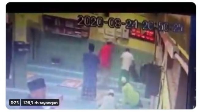 Dalam video tersebut, terlihat seorang pria mengenakan baju koko merah sedang duduk di dalam masjid usai salat berjamaah.