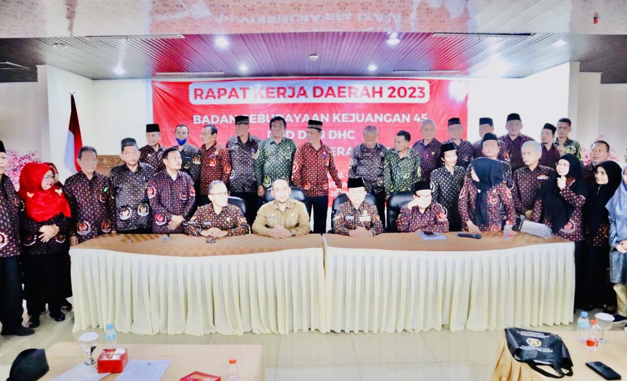 Rakerda ditutup Kepala Badan Kesbangpol Sumut Ir Ardan Noor diwakili Sekretaris Dr Hendra Dermawan, Selasa (29/8/23) siang berlangsung sejak Senin (28/8) dibuka Ketua Umum DHD 45 Sumut Mayjen TNI (Purn) M Hasyim di Asrama Haji Pangkalan Masyhur Medan.