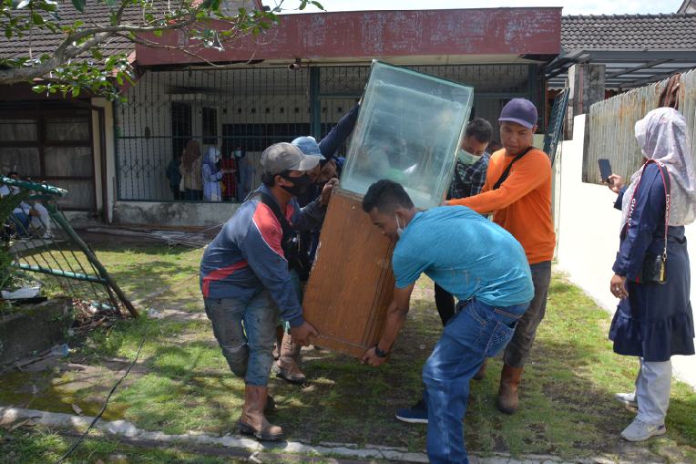 Pihak Aset sudah menawarkan bantuan ke pihak Penghuni untuk memfasilitasi transportasi pemindahan barang-barang, namun pihak keluarga menolak. Sehingga barang-barang hanya diletakkan di depan rumah.