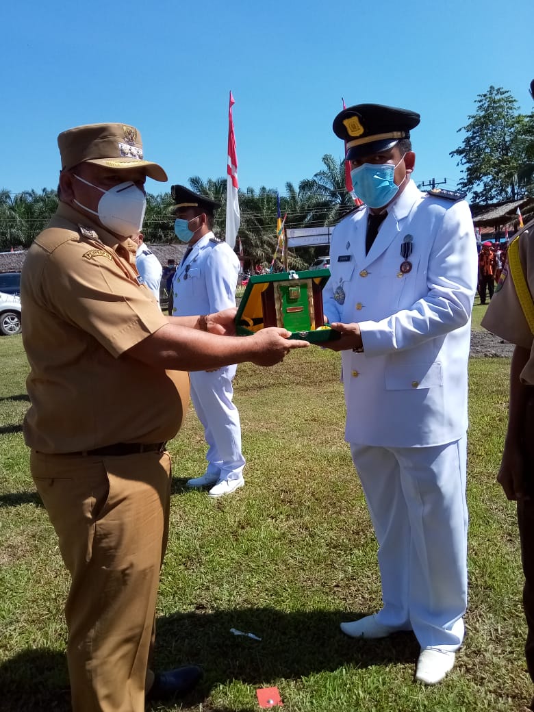 Bupati saat bertindak sebagai Inspektur Upacara, pada amanatnya, mengucapkan selamat kepada Camat dan Lurah, yang telah meraih hasil maksimal melalui penilaian panitia.