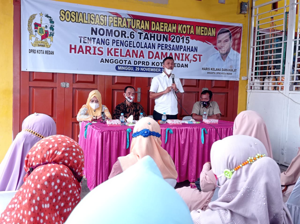 “Kebersihan itu dimulai dari diri kita sendiri. Sudah saatnya kita belajar memilah sampah, mana yang organik dan anorganik. Saya yakin, jika bapak dan ibu dapat memilah dan mengelola sampah tersebut, dapat mendatangkan nilai tambah bagi kita,” terang Haris saat menggelar Sosialisasi Perda Kota Medan Nomor 6/2015 tentang Pengelolaan Persampahan di Jalan Abdul Sani Mutholib Kampung Tengah, Kelurahan Terjun, Medan Marelan, Minggu (29/11/2020).