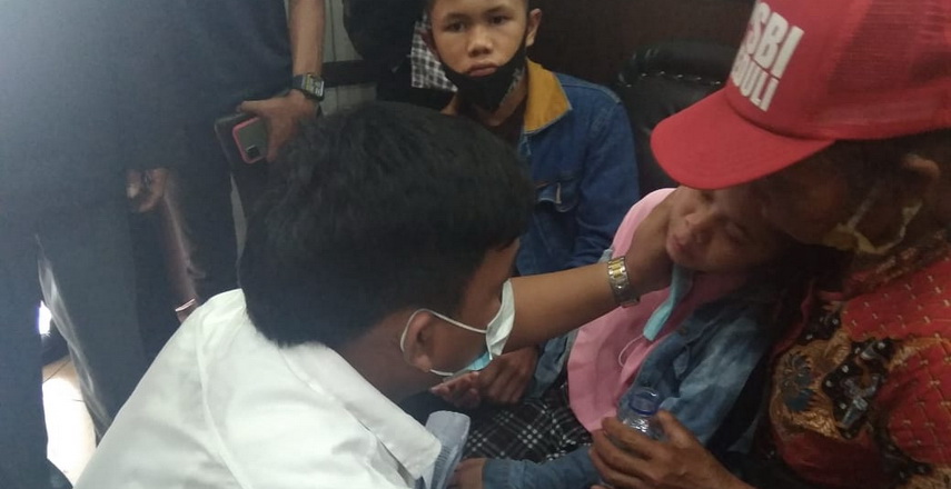 Untuk menenangkan Minanti, kuasa hukum almarhum, Dwi Ngai Sinaga meminta agar tenang, serta membawa masuk ke ruang Polres Samosir.