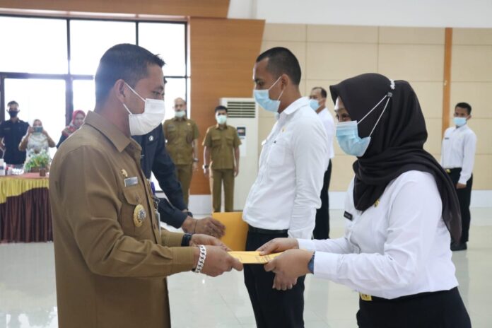 “Selamat bekerja dan ini adalah amanah kepada anda semua. Untuk itu jangan jadikan amanah ini merugikan diri sendiri, keluarga, masyarakat maupun instansi tempat anda bertugas,” pungkasnya. Kegiatan ditandai dengan penyerahan SK oleh Bupati Paluta Andar Amin Harahap SSTP MSi secara simbolis kepada perwakilan CPNS yang hadir.Pantauan, kegiatan penyerahan SK CPNS Lingkup Pemkab Paluta dilaksanakan dengan tetap mematuhi protokol kesehatan yang ditetapkan. (ASR)