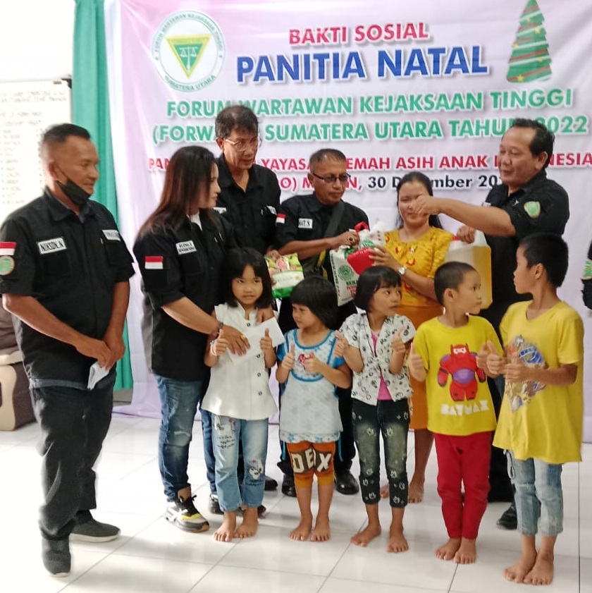 MEDAN-Dalam rangka menebar kebahagian Natal pengurus Forum Wartawan Kejaksaan (Forwaka) Sumatera Utara berbagi kasih Natal bersama anak-anak di dua panti asuhan dan masyarakat kurang mampu di Medan, Jumat (30/12).