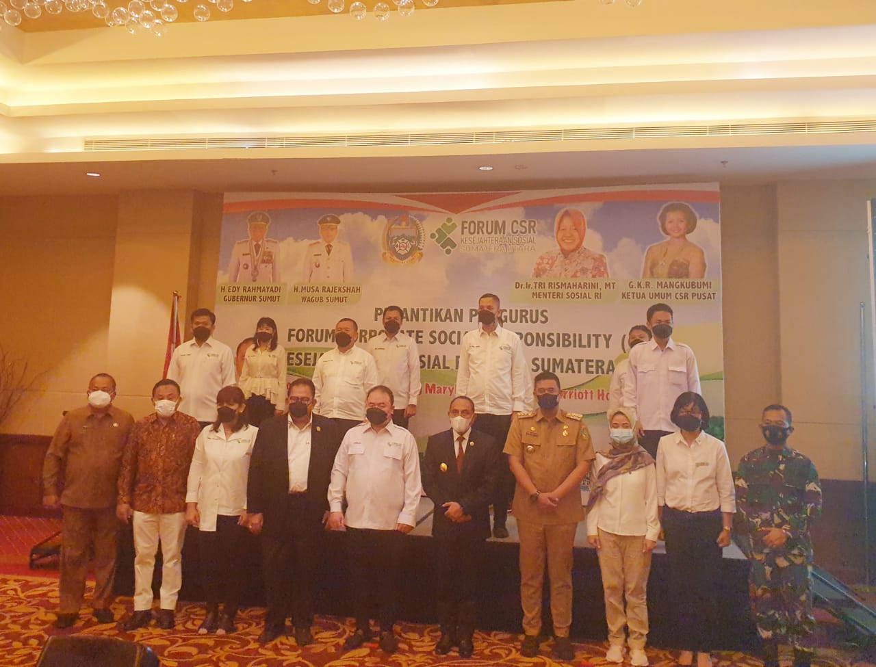 MEDAN – Gubernur Sumatera Utara Edy Rahmayadi disaksikan Ketua DPRD Sumut Baskami Ginting dan Walikota Medan Boby Nasution secara resmi melantik pengurus Forum Corperate Social Responsibility (Forum CSR) Kesejahteraan Sosial Propinsi Sumut yang diketuai Arman Chandra SE Priode 2021 sd 2026 di Hotel JW Marihot Medan, Senin pagi 31/05.