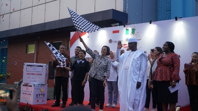 Menteri Keuangan RI, Sri Mulyani Indrawati menyampaikan bahwa pelepasan produk vaksin pentavalen dalam rangka pemberian hibah kepada pemerintah Nigeria.