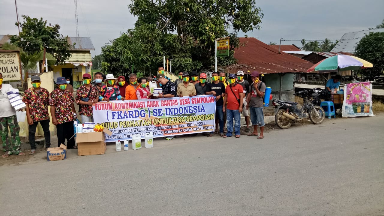 SERDANGBEDAGAI – realitasonline.id | Sambut Tahun Baru 2021, Forum Komunikasi Anak Rantau Desa Gempolan (FKARDG) se Indonesia bekerjasama dengan Pemerintah Desa Gempolan Kecamatan Seibamban Sergai membagikan 6.000 masker dan melakukan penyemprotan disinfektan di rumah ibadah, rumah warga dan sekolah di lingkungan Desa Gempolan, Kamis (31/12/2020).