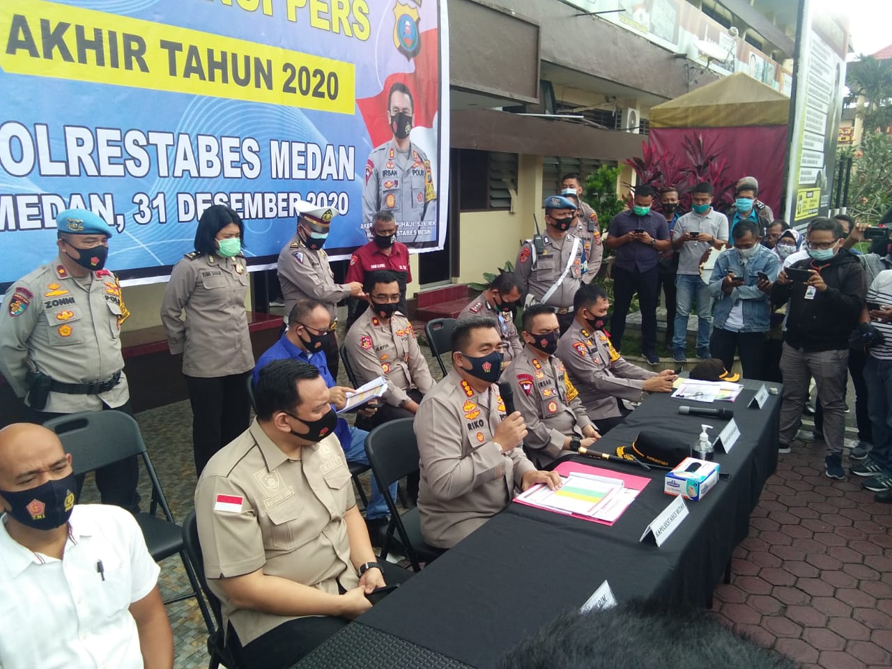 Data itu terangkum berdasarkan catatan yang disampaikan Kapolrestabes Medan Kombes Pol Riko Sunarko dalam Konfrensi Pers Akhir Tahun 2020 di Mapolrestabes Medan, Kamis (31/12/2020).
