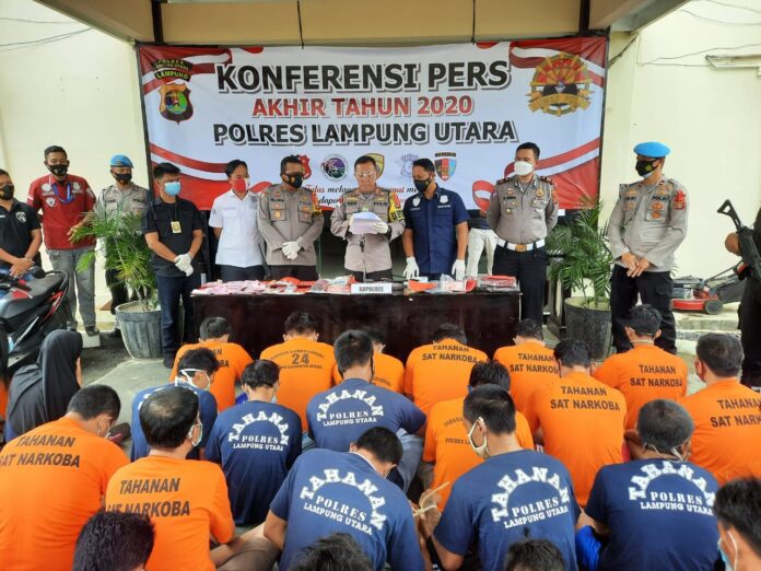 LAMPUNG UTARA – realitasonline.id | Menjelang pergantian tahun 2020 ke 2021, Kepolisian Resor Lampung Utara menggelar konferensi pers akhir tahun tentang situasi dan kondisi Kamtibmas yang terjadi sepanjang Tahun 2020, bertempat di Joglo Mako Polres setempat, Kamis (31/12/2020).