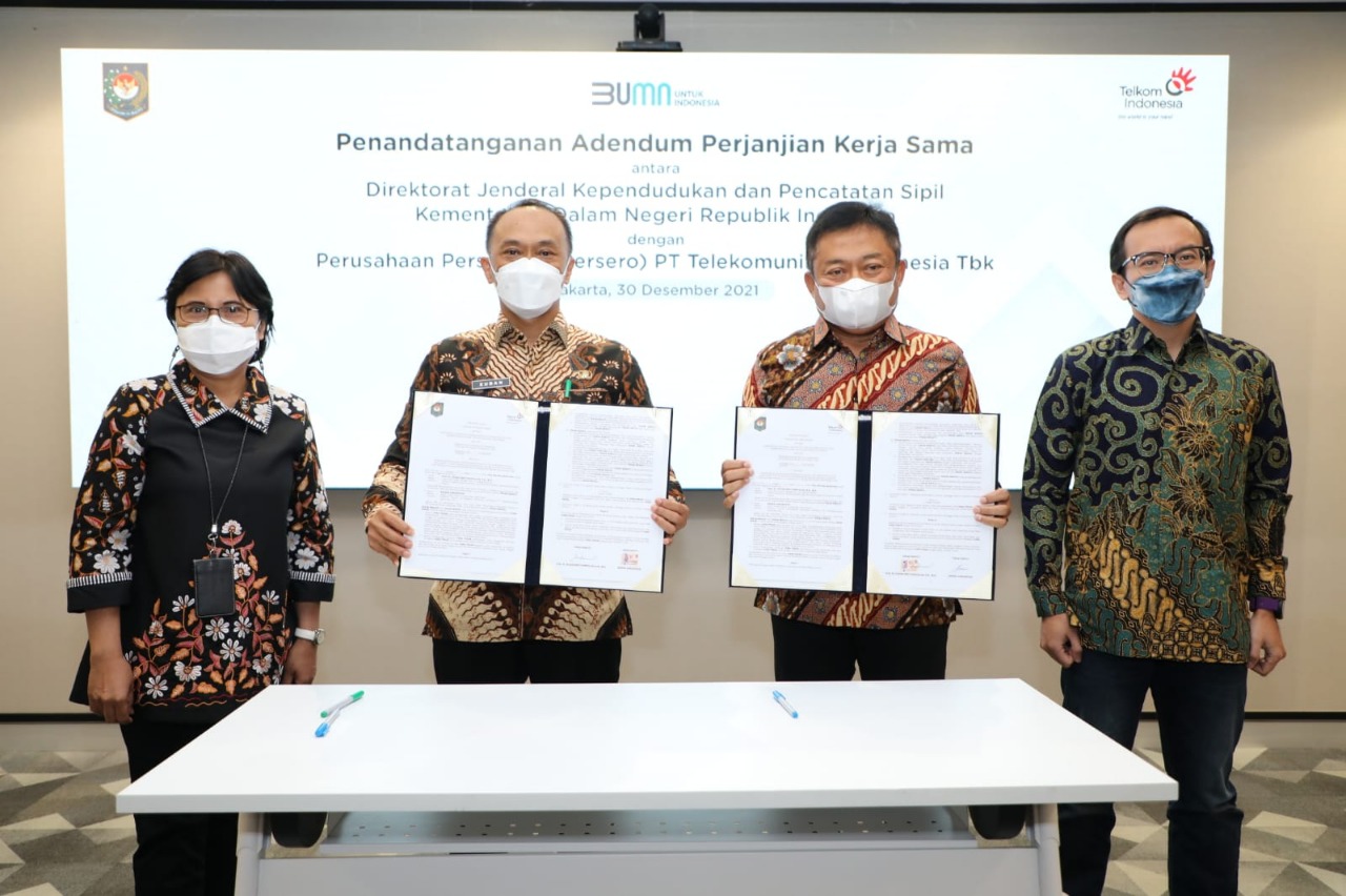 Hadir dalam kegiatan tersebut Direktur Jenderal Kependudukan dan Pencatatan Sipil Kementerian Dalam Negeri Prof. Dr. Zudan Arif Fakrulloh, S.H., M.H., Direktur Utama Telkom Ririek Adriansyah, Direktur Consumer Service Telkom Venusiana, dan Direktur Digital Business Telkom M. Fajrin Rasyid.