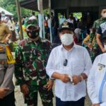 SIMALUNGUN – Kapolres AKBP Nicolas Dedy Arifianto SH, SIK, MH bersama Forkopimda melihat langsung pelaksanaan Vaksinasi Massal di Posko Pasar Serbelawan, Kecamatan