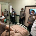 MEDAN-Kapolres Batubara AKBP Ikhwan Lubis SH MH, dan Bupati Batubara Ir Zahir MAP jenguk Kasat Shabara AKP DP Sinaga SH di RS Bhayangkara Medan, Selasa (13/10/2020) malam.