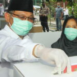 MEDAN – Calon Walikota Medan Nomor Urut 1, Akhyar Nasution ditemani isteri dan kedua anaknya menggunakan hak pilihnya di TPS 22 Kelurahan