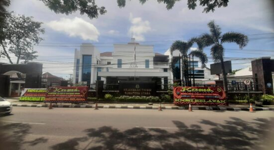 MEDAN-Kantor Kejaksaan Tinggi Sumatera Utara (Kejati Sumut) di Jalan AH Nasution Medan, Senin (26/9/2022) kebanjiran karangan bunga sebagai bentuk dukungan dari berbagai