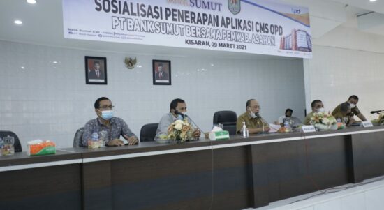 ASAHAN – Guna mendukung pengelolaan transaksi Pemerintah Daerah yang bersifat non tunai aplikasi CMS, PT Bank Sumut Cabang Kisaran laksanakan sosialisasi penerapan