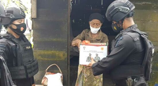 PEMATANG SIANTAR – Satuan Brimob Polda Sumut melalui Batalyon B Pelopor menggelar Bakti Sosial bagikan sembako kepada masyarakat. yang kurang mampu di