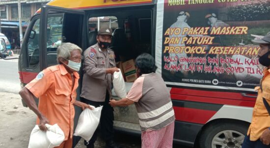 BATUBARA-Menjelang Natal 2020 dan Tahun Baru 2021 Polres Batubara membagikan sembako kepada Umat Nasrani di Seputaran Lingkungan Mapolres Batubara, Kamis (24 /12/2020).