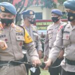 MEDAN – Komandan Satuan Dansat Brimob Polda Sumut, Kombes Pol Suheru, mengecek pasukan dan peralatan personel. Kegiatan itu dilakukan dalam apel kesiapsiagaan