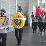 MEDAN – Satuan Brimob Polda Sumut melakukan acara penyambutan terhadap jenazah Bharatu Anumerta Muhammad Kurniadi Sutio, Senin (27/9/2021). Kegiatan itu dipimpin langsung