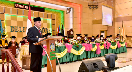 MEDAN – Gubernur Sumatera Utara (Sumut) Edy Rahmayadi menghadiri secara langsung acara wisuda Institut Deli Husada Delitua Tahun Akademik 2019/2020, Selasa (19/1).