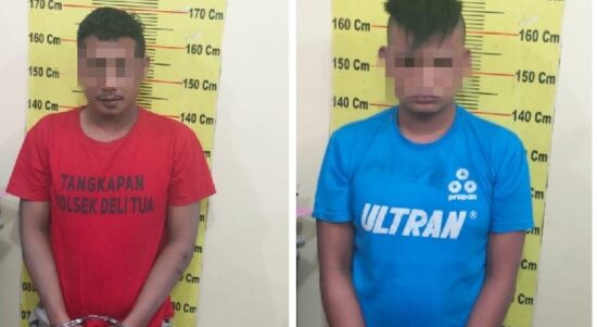 MEDAN – Dua perampok, HP (27) dan RTN (27), warga Jalan Brigjen Katamso, Gang Perbatasan Medan tersungkur ke aspal setelah sepeda motornya