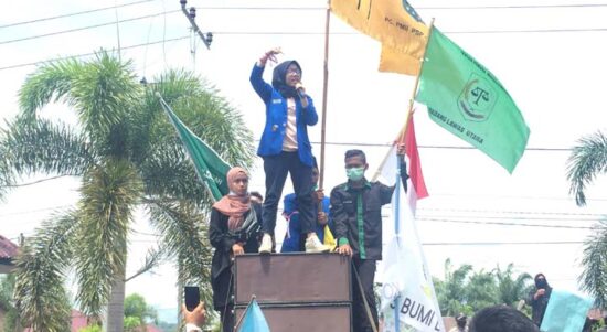 PALUTA – Ratusan mahasiswa yang tergabung dalam Aliansi Pemuda Mahasiswa Masyarakat Padang Lawas Utara (Alpema) lakukan aksi tolak UU Omnibus Law Cipta
