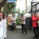 MEDAN – Puluhan massa yang mengatasnamakan DPD Gerakan Mahasiswa Nasional Indonesia (GMNI) Sumut menggelar aksi unjukrasa di gedung DPRD Sumut, Kamis (1/10/2020).