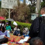 MEDAN – Puluhan jemaat GBKP Kemenangan Tani KM12 Kelurahan Kemenangan Tani, Kecamatan Medan Tuntungan, terpaksa melakukan kebaktian pada trotoar/pinggir Jalan Jamin Ginting
