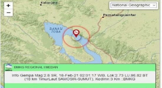 MEDAN – Gempa bumi bermagnitudo 2,8 mengguncang Kabupaten Samosir, Sumatra Utara, Kamis (18/2/2021) pukul 02:01:17 WIB. Seperti dilansir iNews.id, Getaran gempa tak
