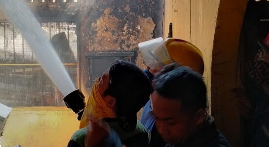 Medan – Bangunan gudang yang menjadi tempat penyimpanan dekorasi pesta, hangus dilalap si Jago Merah, di Jalan Lembu Kecamatan Medan Kota, Kamis