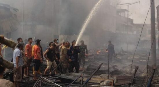 DELI SERDANG – Pajak Lama Perbaungan di Jalan Deli, Kelurahan Simpang Tiga Pekan Kecamatan Perbaungan Kabupaten Serdang Bedagai mengalami kebakaran, Kamis (16/9/2021)